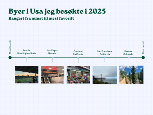 Denne visualiseringen viser hvor mange timer jeg har jobbet i desember og januar, mot hvor mange timer jeg har brukt på transport til- og fra jobb. Dataen er…