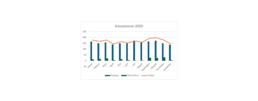 Arbeidet i løpet av året organiseres og rapporteres i 3 tertialer. Visualiseringen viser en korrelasjon mellom antall timer arbeidet utover ordinær arbeidstid og forberedelse til og avslutning av…