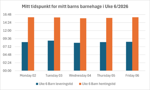 Visualiseringen viser min handlinger som forelder ansvar knyttet til barnet mitt i uke 6 av 2026. Bildet ble utviklet av excel inndre software etter jeg ga den min…