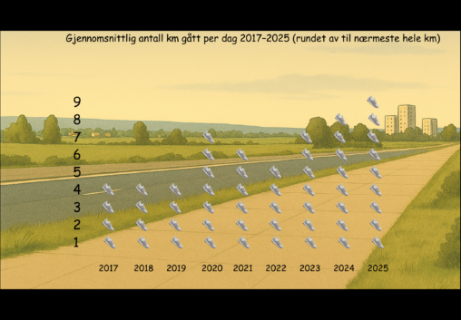 This data visualisation illustrates my average number of kilometres walked per day as registered by the health app on my apple iPhone from 2017 to 2025. The actual…