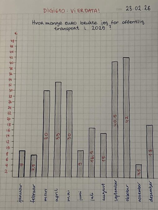 The visualization represent the number of days in the month of January in 2025 and 2026 that the temperature was below zero degrees Celsius in Bergen. Each day…