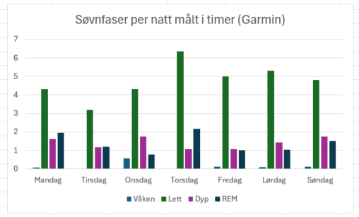 Her er min visualisering av antall skritt jeg tok i uke 2 2026, data er hentet fra min Garmin aktivitetsklokke. Brukt Microsoft Excel for fremstillingen.