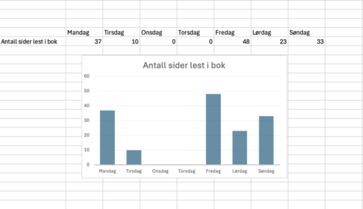 Søylediagrammet viser hvor mange joggeturer jeg hadde per måned i løpet av året 2025. Diagrammet viser dermed hvilke måneder jeg løp mye, og hvilke måneder jeg løp litt…