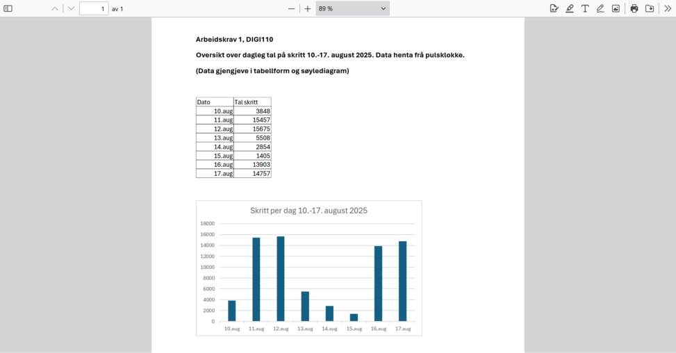 Oversikt over dagelg tal på skritt 11-17- august 2025