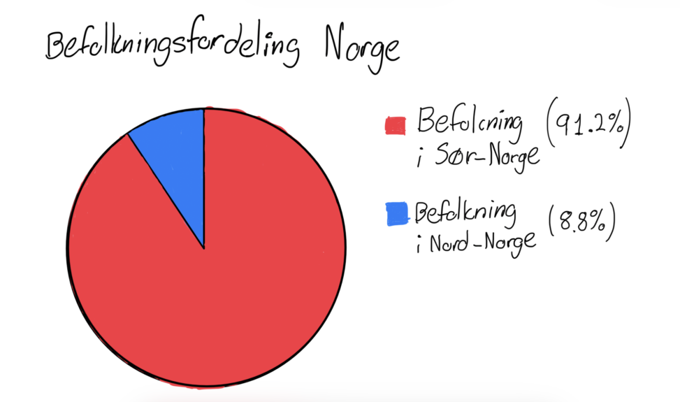 Visual representation of data describing the population spread of Northern/Southern Norway