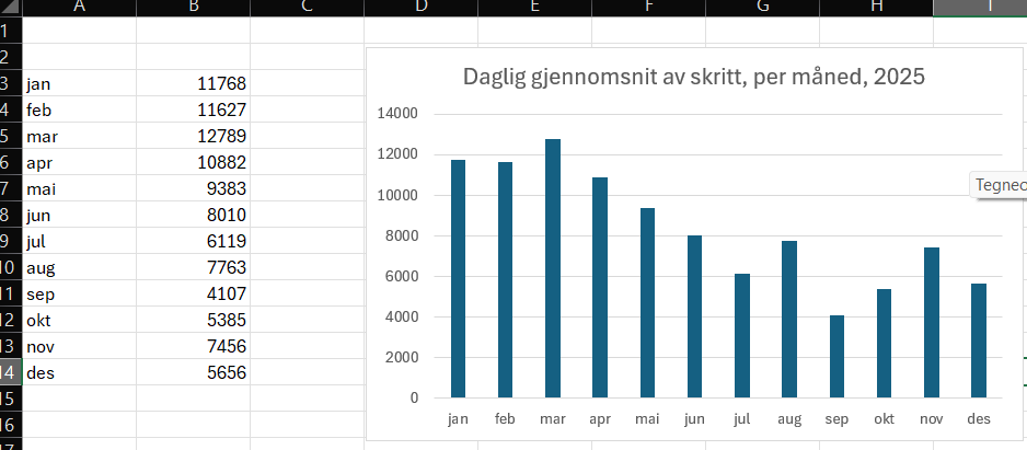 This graph is visualizing my average daily steps from 2025, grouped by months.