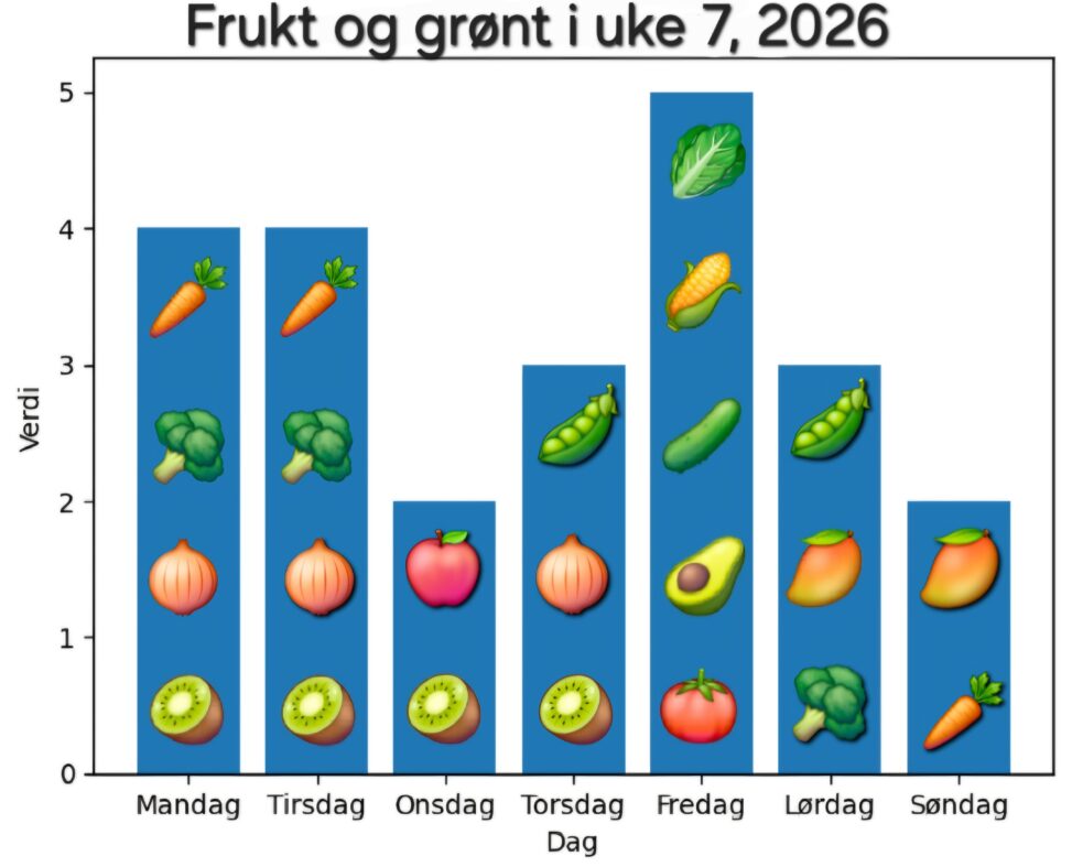 My attempt to eat the recommended 5 fruit and vegetables a day in week 7 of 2026 – Monday 4, Tuesday 4, Wednesday 2, Thursday 3, Friday 5, Saturday 3, and Sunday 2.
