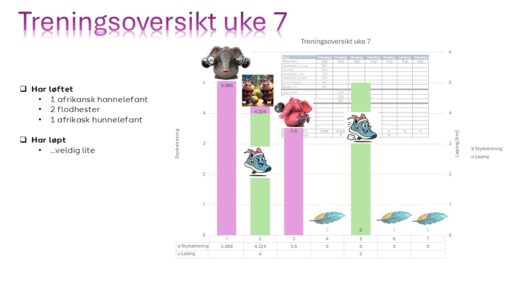 The visualization provides information about how much I have trained during week 7 2026. The total amount of weight lifted is illustrated by something that is recognizable –…